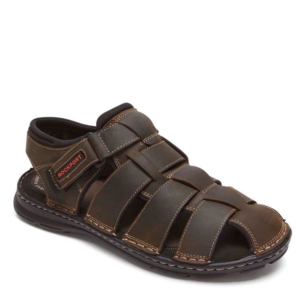 Rockport Darwyn Sandals The Rockport Darwyn Sandals are a must have addition to your summer sandal collection, featuring a strap design to the upper with a touch tape fastening to the ankle for a secure fit and a contoured footbed for comfort. A moulded outsole with a deep tread pattern provides fantastic traction for those summer time trail walks, completed with the Rockport branding.