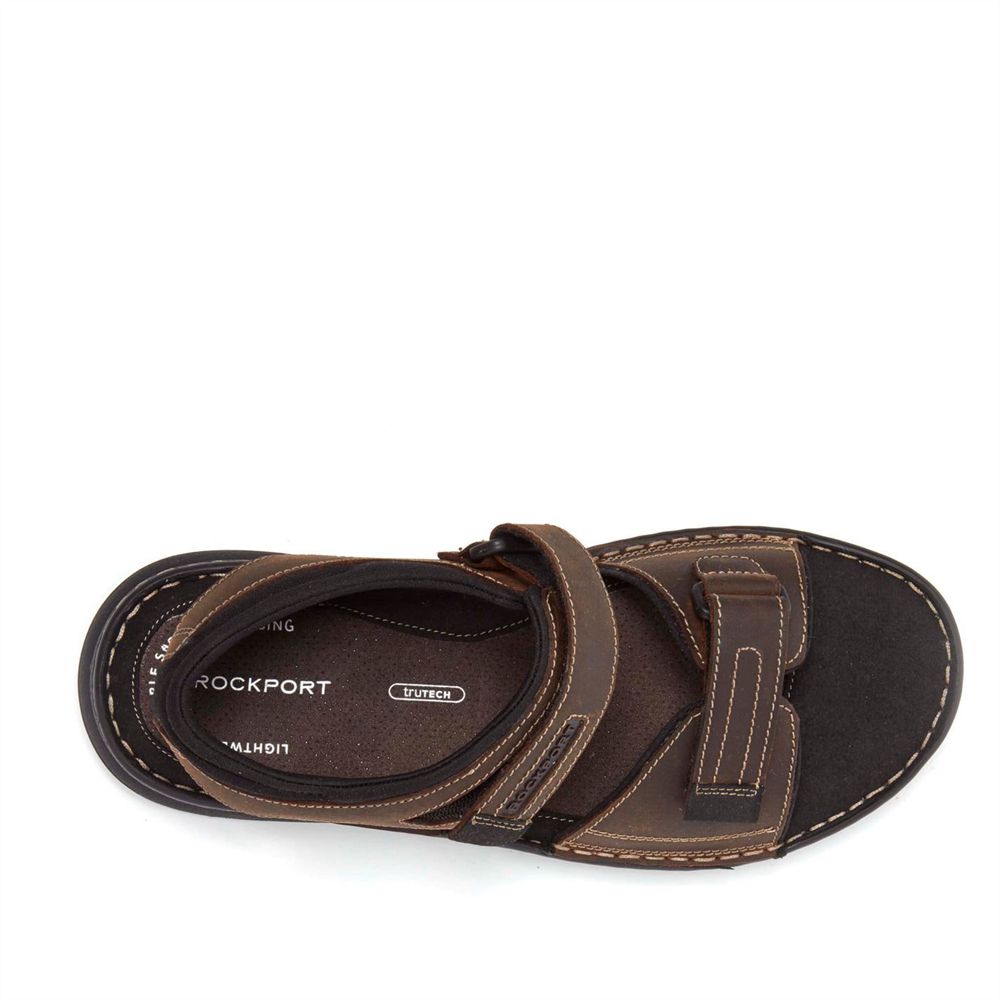 Rockport Darwyn Strap Sandals The Rockport Darwyn Strap Sandals are a great addition to your summer footwear collection, crafted with a double touch tape fastening straps to the ankle and forefoot for a secure fit while the contoured footbed and moulded outsole give a comfortable ride. Stitched detail across the upper coupled with the Rockport branding completes the look.