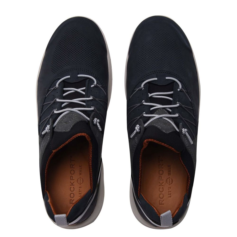 Rockport Lets Walk Bungee Men's Trainers These Rockport Lets Walk Bungee Men's Trainers have been constructed with a leather coated ortholite insole and an EVA foam midsole for plush cushioning with every step, while the bungee lace system provides a snug fit and the rubber outsole pods deliver long lasting traction.