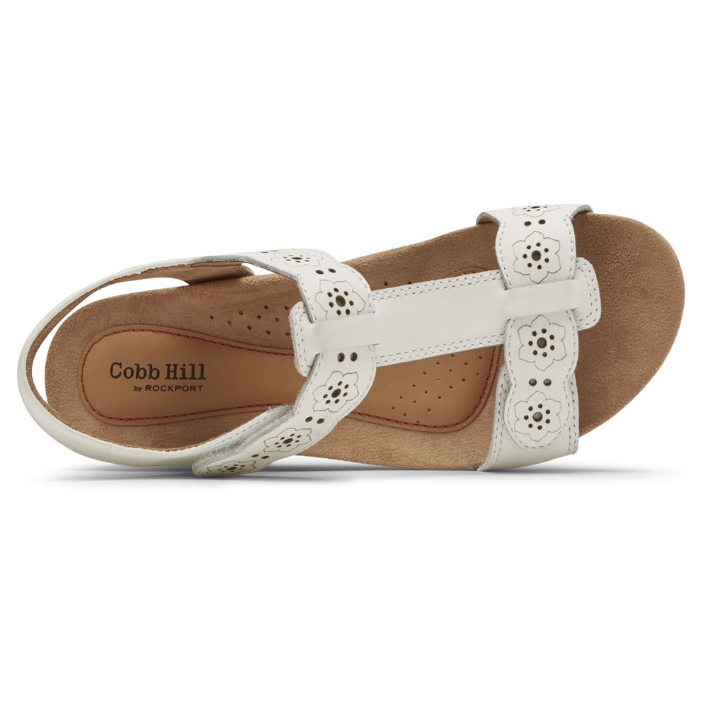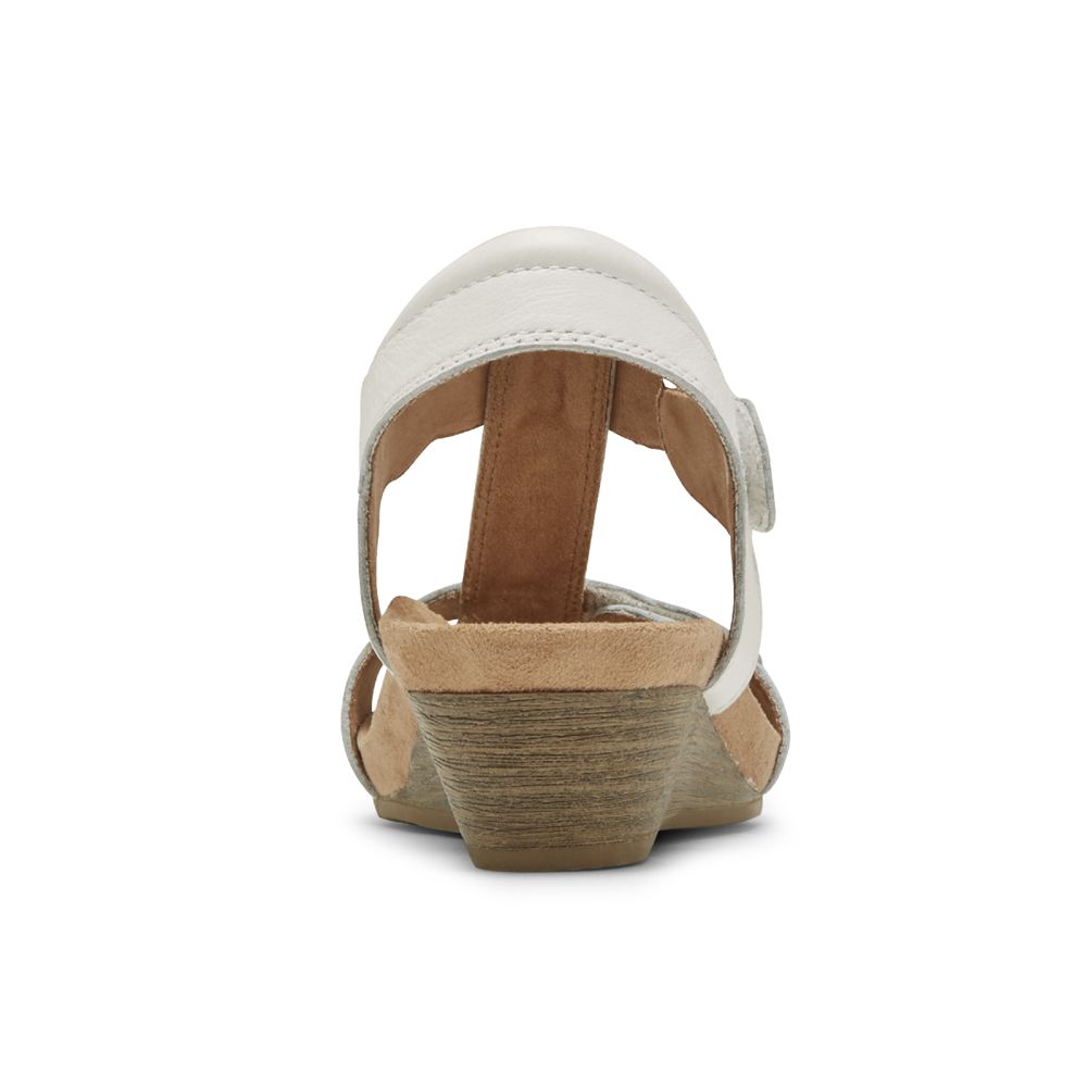 Rockport Women's Cobb Hill Hollywood T-Strap Wedges Sandals - White - USA (6791CXIOA)