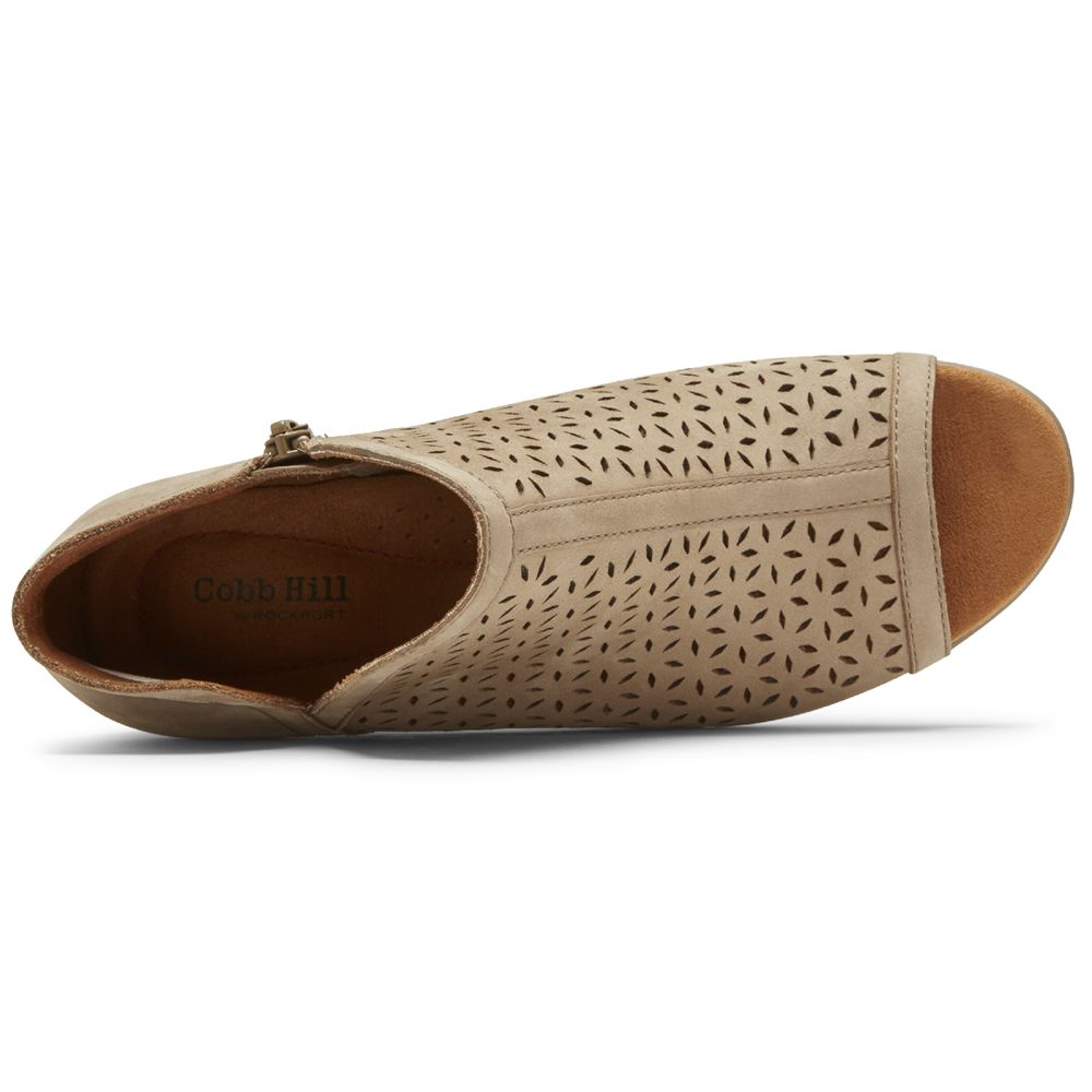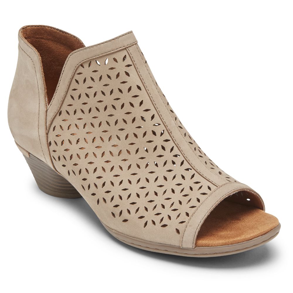 Hit a high note in our Laurel Open-Toe Booties, crafted by Cobb Hill. Simple laser-cut perforations form a floral pattern that creates subdued style while revealing just a hint of skin. The elegant cone heel provides the right amount of lift, and a molded microfiber footbed and cushion pad add unparalleled support and comfort. These ankle boots are the perfect finishing touch to your maxi dress, blouse and jeans, or tee and capris.