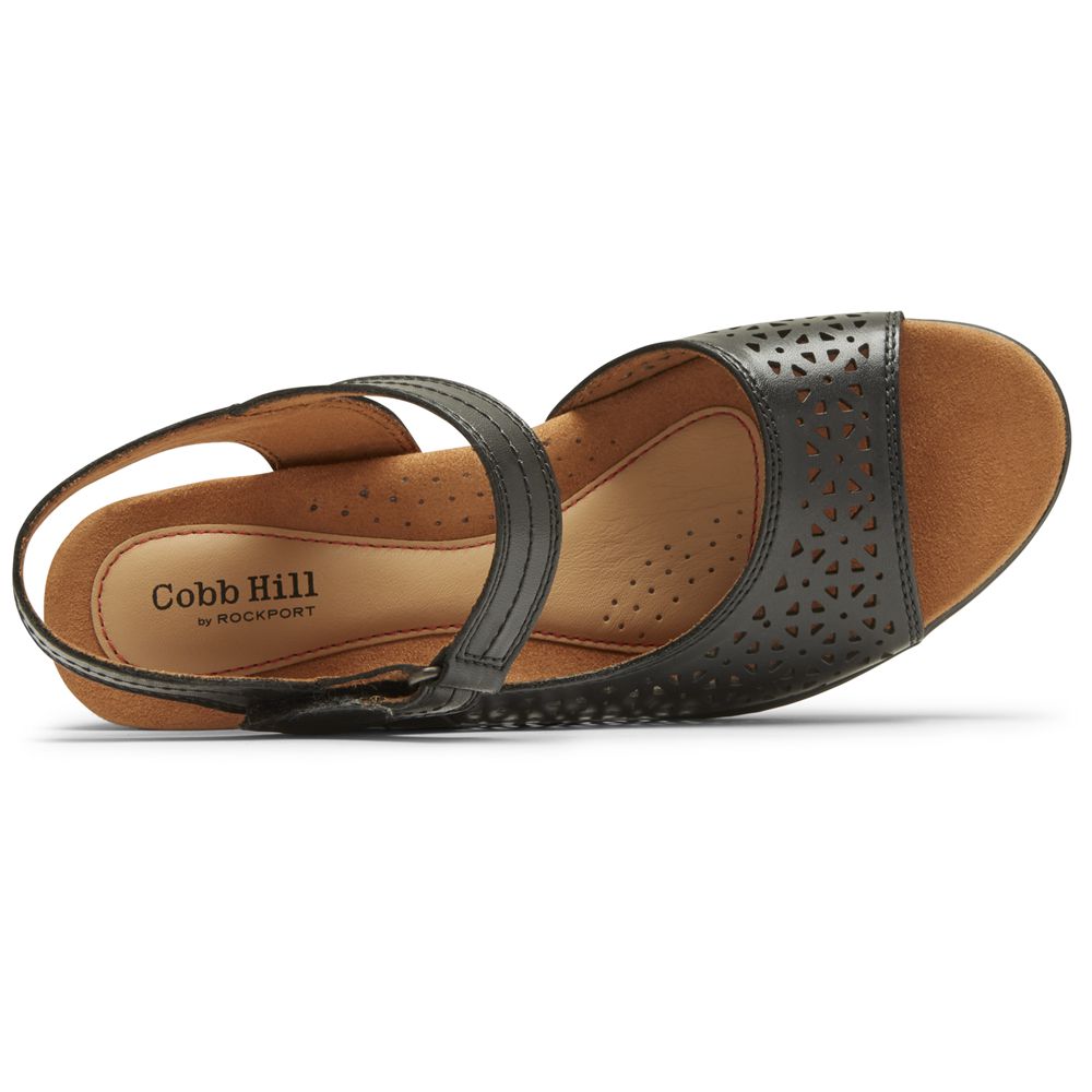 Few shoe styles feel as fresh as an open-toe sandal. Our Laurel sandals offer an increasingly cool attitude, from their asymmetrical curve to the geometric perforations, down to their unexpected cone-shaped heel. Thanks to Cobb Hill's cushioned insole and a microfiber lining, you'll be able to wear these sandals comfortably all day long, and look forward to putting them on again tomorrow.