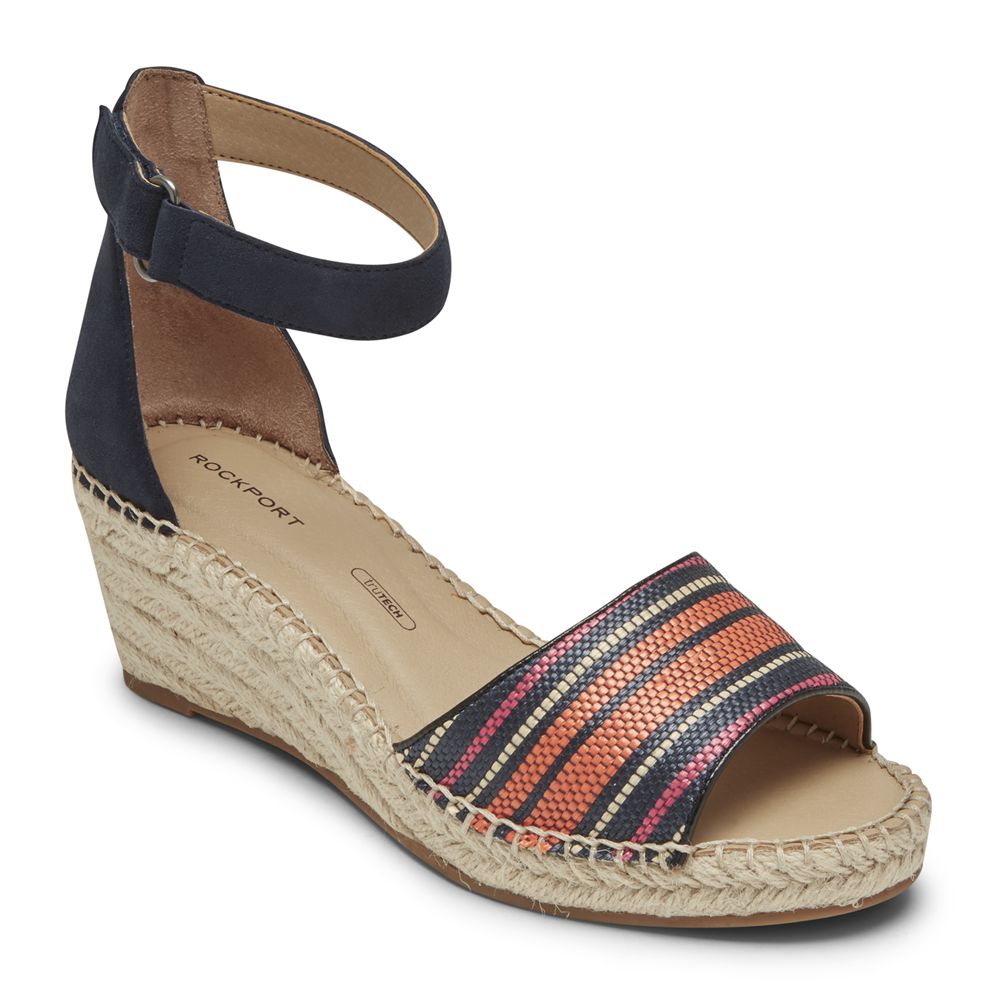 Rockport Women's Marah Woven Ankle Strap Wedges Sandals - Navy - USA (3846SJWIE)