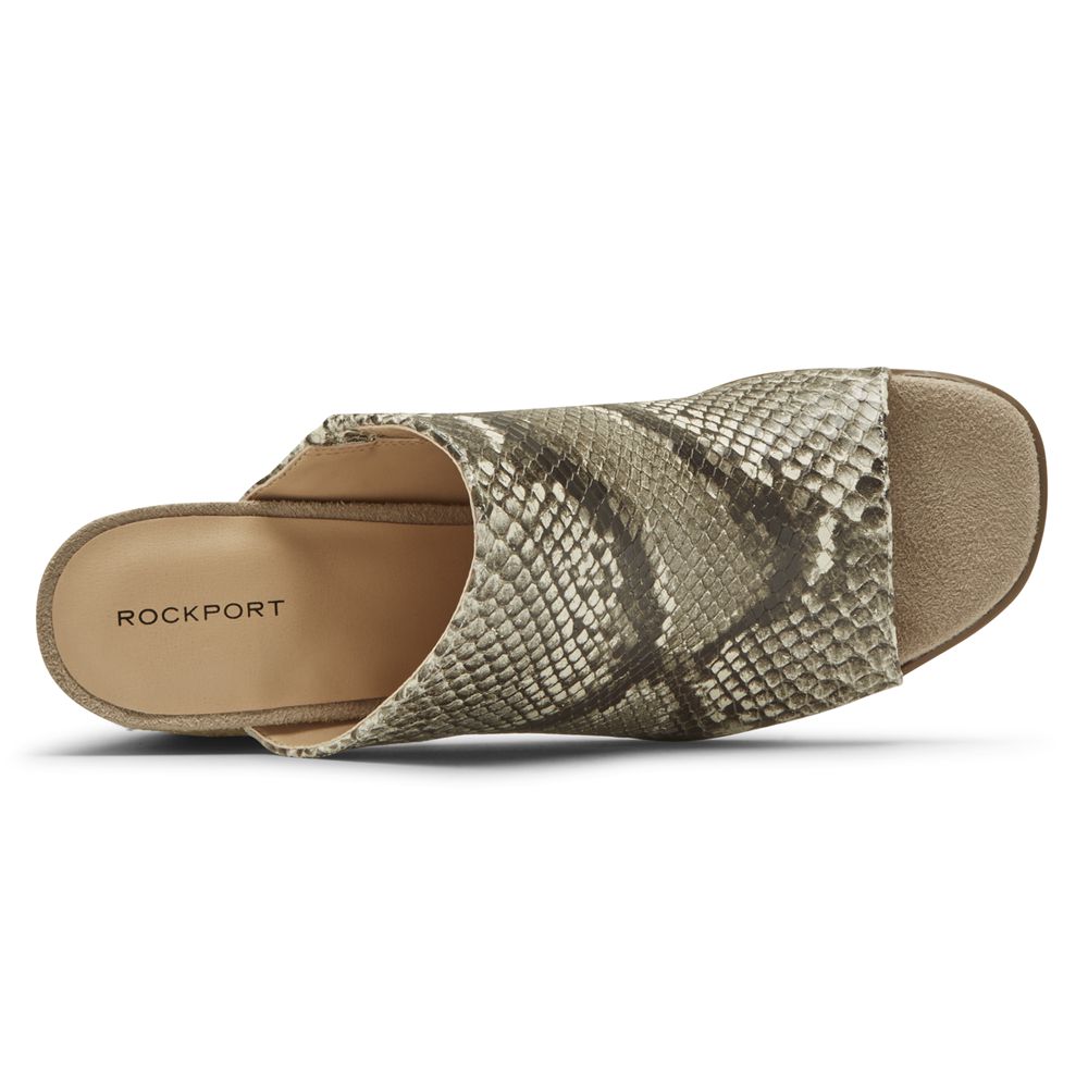 Rockport Women's Total Motion Amara Heels Slide Slides - Snake - USA (0361FTVED)