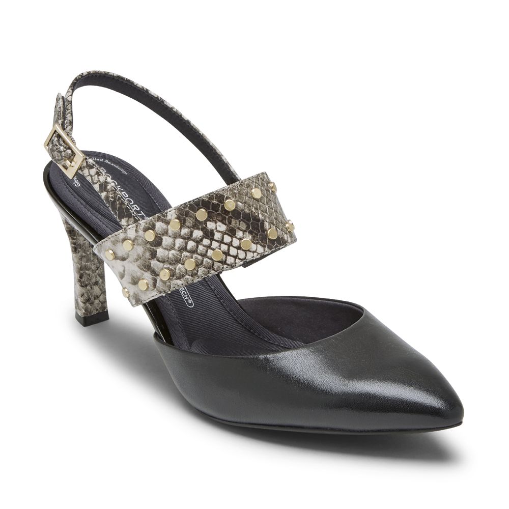 Rockport Women's Total Motion Sheehan Studded Heel Pumps - Black - USA (2573RBHVJ)