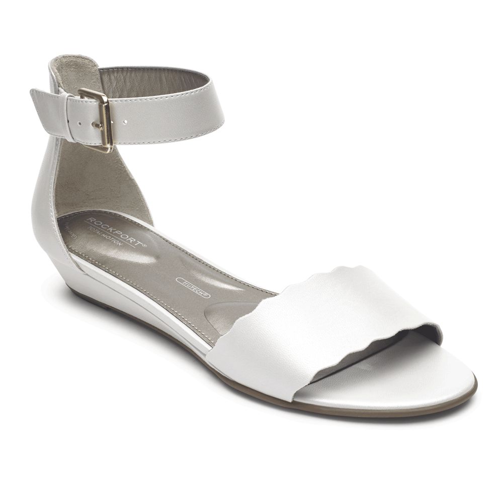 A sweetly scalloped band across the toe of these Total Motion® sandals enhances their delicate appearance without compromising on comfort. An adjustable ankle strap and padded footbed ensure proper fit for all-day wear.