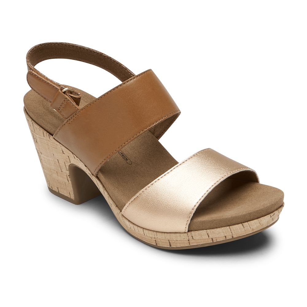 Rockport Women's Vivianne 2-Band Heels Sandals - Brown - USA (9127CGAIL)
